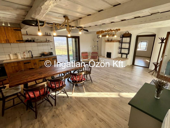 Tagyonhegyen hosszú távra kiadó egy igényesen felújított, 140 nm-es, gyönyörű balatoni panorámás présház-nyaraló hatalmas pincével, termő szőlővel (melynek gondozása megoldott). A ház földszintjén az egybenyitott nappali-konyha-étkezőbe lépünk, innen egy nagy hálószoba, egy teljes fürdőszoba és egy különálló wc nyílik. Mindkét oldalon kényelmes terasz kapcsolódik a házhoz, az egyik oldalon szép diófával, a másik oldalon kültéri kiülővel. Az emeleten egy nagyobb háló és egy alvásra is alkalmas közös tér van kialakítva. A felső szint légkondicionált. A fűtés távolról is elérhető elektromos panelekkel történik, de a földszinten egy nagy cserépkályha is működik.