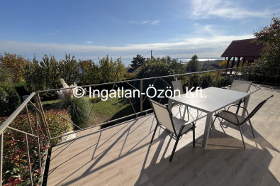 A telek mérete 870 m2-es. A szomszédos épületek nem lógnak bele a pazar kilátásba. A balatoni panoráma igazából a felső 2 szintről hibátlan, szinte 180 fokban tárul fel a Balaton, Tihanytól Balatonkeneséig. A kert szintjéről lombhullást követően élvezhető a panoráma.