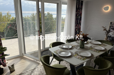 A telek mérete 870 m2-es. A szomszédos épületek nem lógnak bele a pazar kilátásba. A balatoni panoráma igazából a felső 2 szintről hibátlan, szinte 180 fokban tárul fel a Balaton, Tihanytól Balatonkeneséig. A kert szintjéről lombhullást követően élvezhető a panoráma.
